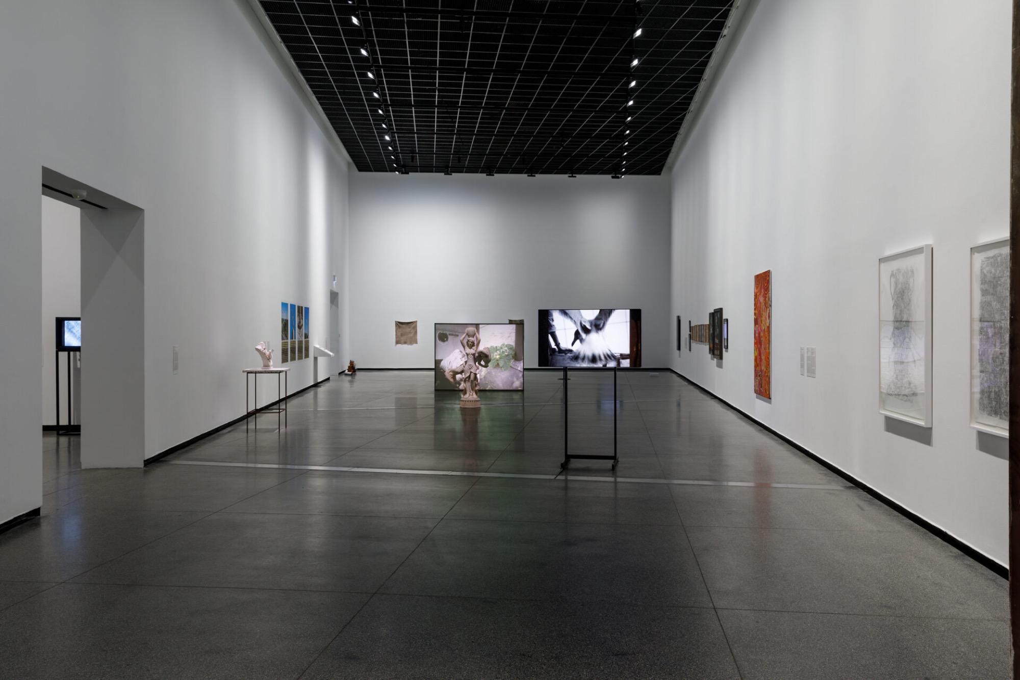 Ciprian Mureșan attends to the iconography of Daphne to address questions concerning the reproduction and reception of icons of western art history in Drawing after ‘Apollo and Daphne’ by Bernini photographed from different angles (2021) and Drawing after a selection of representations of Daphne from the archive of the Warburg Institute (2021). The works make use of Aby Warburg’s Mnemosyne project by remixing and redoubling a palimpsest of reproductions. Like Warburg, Mureșan, who grew up in post-communist Romania, is as much concerned with the image as with its civilisational support.