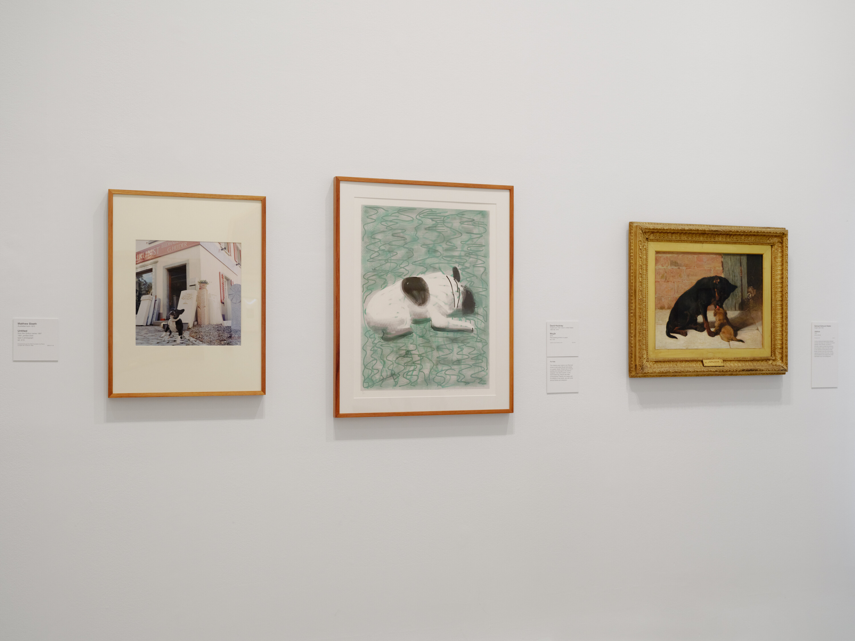 I take you on this extended Arcadian detour as I think it offers a lesson—an agreeable lesson—in how generous institutional collection access can give artworks new contexts and publics. Cats & Dogs does this to some degree, but the framing essentially solicits a kind of Where’s Wally mode of looking, prompting us to search in the corners of artworks for pets. It’s fun, but not particularly thought-provoking. And, to risk stating the obvious, the point of a public collection is that it’s for the public. This leads us to one great scandal of Cats & Dogs: the fact that it is a show of works from the public collection that we must pay to enter! Some might call that a dog act: akin to paying to look at art in your own living room. (There is a family ticket discount—perhaps an opportunity to test out the limits of Haraway’s kin theory in practice?) Ok, sure, art workers need fair pay, and the Victorian state government, currently in a debt hole that goes far deeper than any Metro Tunnel dig, doesn’t seem to be in a great position to bolster the NGV’s cash flow. But the exhibition is prominently sponsored by a gigantic international pet food (and chocolate bar) conglomerate—and the punters still have to cough up petty cashola? This seems a bit grim. The gallery is banking on our obsession with our pets, speculating that many of us are willing to pay for the quasi-narcissistic experience of seeing the distant relatives of our domesticated beasts represented in artworks spanning the centuries and the globe.