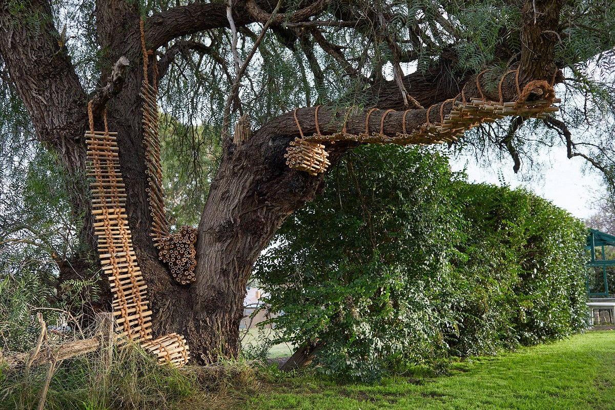 Kandos is a microcosm of the environmental challenges facing Australia and one of these concerns the future of energy. Unlike Milliss’s large-scale vision for a solar thermal power station, some of the artworks in Cementa22 were rethinking energy on a molecular and more-than-human level. On Saturday morning, Kath Fries led a meditative walking tour around a local resident’s backyard as part of her work, Refuge (2022), which comprised bamboo structures to attract native bees. At first, I found the disciplined slowness of the walk challenging. However, in taking careful and deliberate steps, I felt the push-down and spring-up of thick grass underfoot. The distinct Kandos birdsongs sounded sharper as did the cool breeze on the back of my neck. We then drifted up the street to Tina Stefanou’s The Longest Hum (2022), an artwork that quickly became a destination (“are you going to the hum?”). People were instructed to line up along the street and fill the air with a ten-minute long collective hum, broadcast live via the local radio station. Feeling a bit awkward and bemused, I was less clear on what I was supposed to be feeling. Later on, a friend and I reflected on the experience and how we were subconsciously imitating each other’s pitch and volume—a subtle sonic dance back and forth. And on Saturday evening, Pia van Gelder’s performance-lecture, Tilting Winds (2022), spoke about straining to hear the actual sounds of a wind turbine, its machinic hum and the “secret music” on the inside. These works facilitate a closer contact with the “secret music” that supports life—bees, the crunch of grass, vibrating bodies, industrial turbines. This is also about the social context of energy creation and what it means to enter into a reciprocal exchange, how to use energy without extinguishing it from somewhere else.