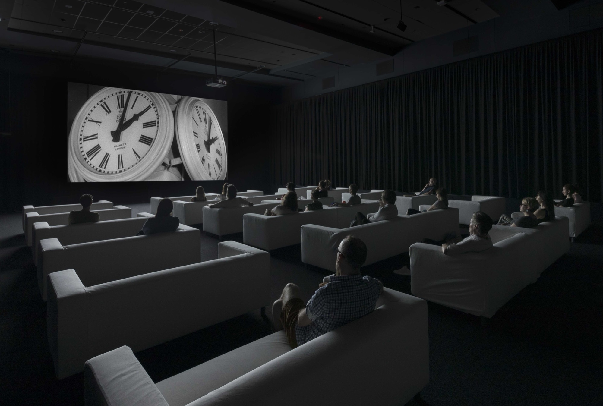 The brilliant conceit of the piece is that Marclay has assembled some 12,000 pieces of footage from the history of cinema that feature clocks, watches and people saying what time it is and edited them together so that the time depicted on the screen is the same as the time in which we are actually watching it. So that, for example, when Ray Milland despairingly looks at his watch as he stumbles out of a bar into the bright sunshine in The Lost Weekend (1945) and it says 12.30 pm, it's exactly 12.30 pm in the screening room. Or if you're still up at 3 am, you're going to see an excerpt from George A. Romero's Night of the Living Dead (1968) where the zombies walk past a clock in the deserted town square with that time on it.