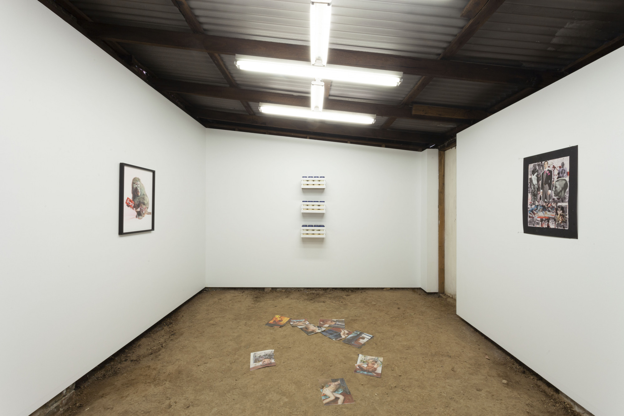 Sex is Gay (Part Deux) showed at Guzzler. This time curated by Segbedzi, the group show brought together five US-affiliated artists and resident mayosexual Alex Vivian. Semen and celebrity were recurring themes. There were two videos, two digital prints, two collages and a Donald Judd meets Whole Egg wall work. Spaced vertically, a set of three crates labelled “FRESH FUCKHOLE PRODUCE” held distinctive royal blue-lidded jars. The vessels faced a littering of pages torn from of an art-porn shoot by Ramsay Alderson, Richard Hawkins and Mathieu Malouf, and the latter’s grainy video of the Kardashians rolling around in a studio. In the smaller room adjoining the main gallery, a video by the mysterious Alderson played. I was pleased to discover that the appendage being thrust repeatedly into a vacuum was not, as I had previously thought, a particularly veiny forearm. Ejaculation confirmed this. Enchantée.