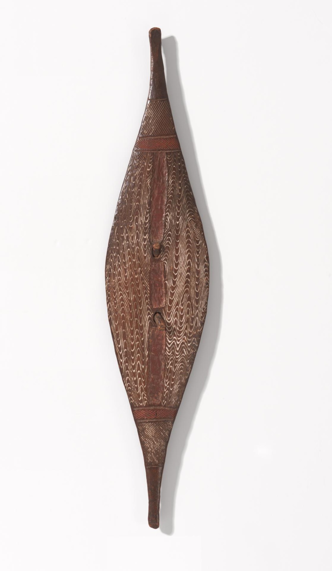 Colony: Australia 1770–1861 is an extraordinary social history exhibition, tracing the European discovery and colonisation of Australia, from Melchisédec Thévenot’s 1644 map of New Holland through to Nicholas Chevalier’s 1860 watercolour of the State Library, which in the early days also housed what was called the Museum of Art. The show concludes with Chevalier’s much-loved The Buffalo Ranges (1864), the first purchase for the new gallery, and throughout Colony: Australia 1770–1861 and Colony: Frontier Wars there is a salutary, although not virtue-signalling, self-implication of the institution in the very colonial history it is now trying to unpick. Upstairs in Frontier Wars, there is a scattering of unidentified Aboriginal shields that the Museum of Melbourne is now in charge of, which at once is a heart-breaking indication of the indifference with which they have hitherto been regarded and a spectacular affirmation of their new cultural power, as spotlit emblems of colonial death and dispossession.