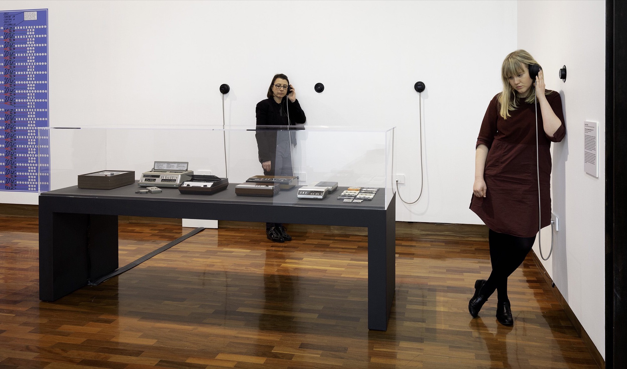 The implication of eavesdropping as motivated by pernicious intent is apparent in Sean Dockray's short video Learning from YouTube (2018) and Susan Schuppli's sound installation The Missing 18 ½ Minutes (2018). Schuppli in particular has focused her practice over the last 20 years on the subject of eavesdropping and this exhibition presents a suite of archival photographs relating to the political scandal of the White House tapes: the Nixon Administration's illicit audio-tape recordings in the Oval Office taken between 1971-73, in particular Tape 342 and its infamously erased 18 ½ minutes. This section of the tape—along with a facsimile of the original technical investigative report—forms the crux of Schuppli's installation; and donning headphones one is able to listen to the crackling recording shot through with buzzes and the occasional beep—an opaque sonic experience of constitutional silence.