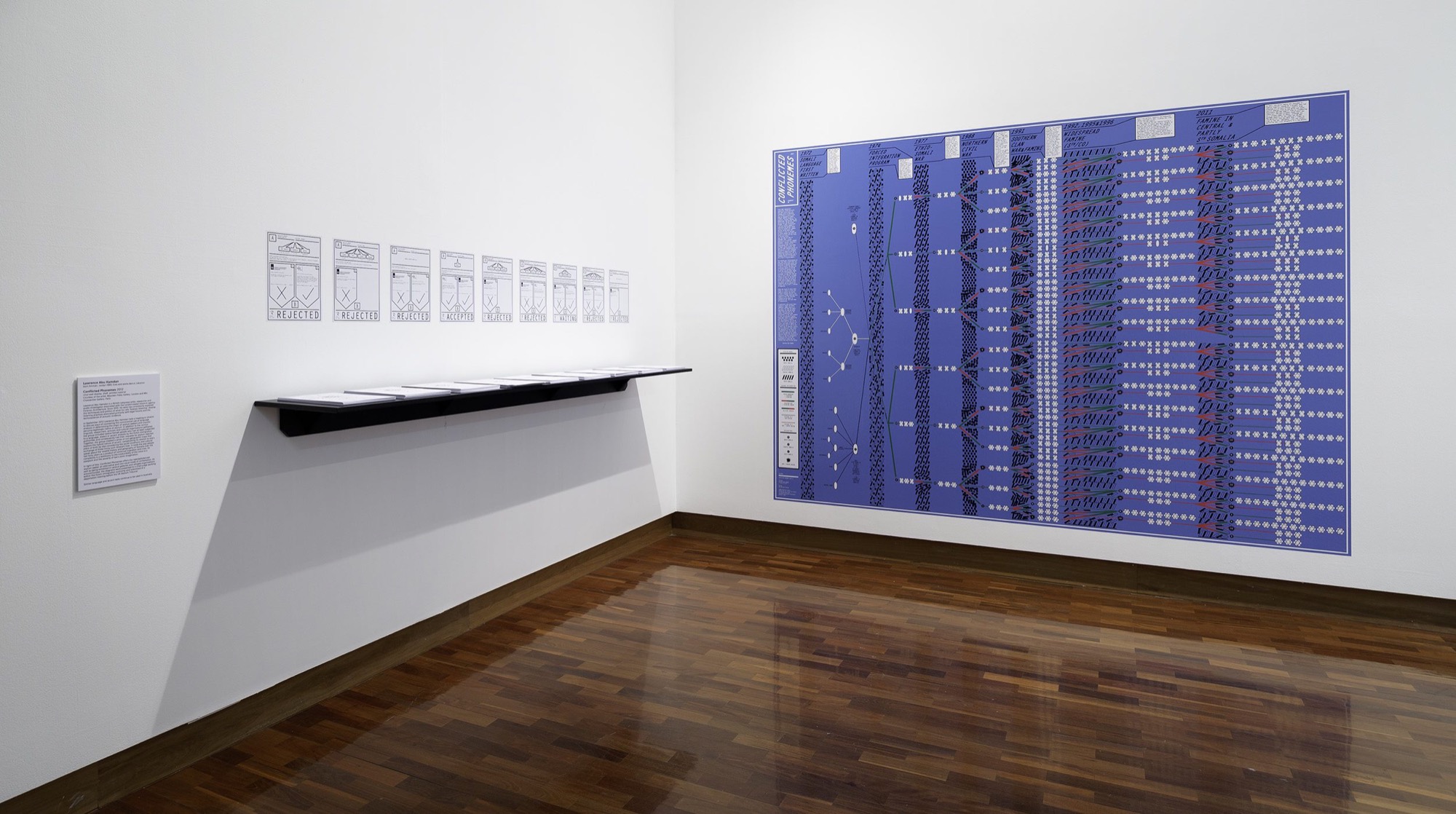 The national shame of Australian federal policy on refugees presses home in perhaps the subtlest work in the exhibition, How Are You Today? (2018), produced by the Manus Recording Project Collective. Commissioned especially for Eavesdropping, the work is a collaboration between six men incarcerated on Manus Island and three resident in Melbourne, and comprises a series of 10-minute sound files recorded daily by the men on Manus, transmitted and uploaded to the Ian Potter Museum for looped playback on the same day, producing an ongoing archive of sound files for the duration of the exhibition. The recordings bristle with immediacy and gravitas.