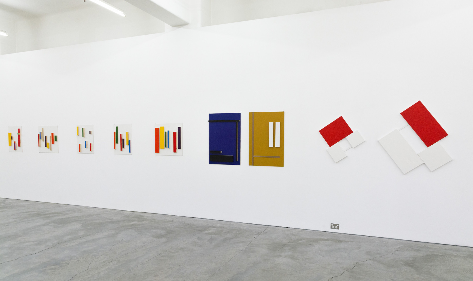 Enough has been written about Nixon’s unwavering dedication to the Russian Avant-Gardes and, in particular, his undying devotion to the Suprematist Kazimir Malevich. But one aspect bears repeating, because the consistency of Nixon’s output only reminds us of this original source. Malevich’s transcendental approach to abstraction was closely tied to the revolutionary climate of Russia in the early twentieth century. That Nixon continues to work in a style that he originally dedicated to Malevich raises a number of questions about the transferability of avant-garde rhetoric into the current day when, as all too many commentators have observed, the avant-garde is preserved in time only by its failure to achieve revolution. There is a tendency to denigrate artists who consistently work in the same style. That constant reinvention should be the goal of artistic output (to repeat a common cliché) points to our short attention spans. Indeed, throughout the 20th century, avant-garde movements including the Bauhaus and Constructivism embraced repetition. For them, it represented the democratising possibilities of mass production and industry standards and, by extension, human equality. The nature of the repetition presented at Anna Schwartz Gallery is one of familiarity, not boredom—something that seems all the more pertinent given the uncertainty of our current moment.