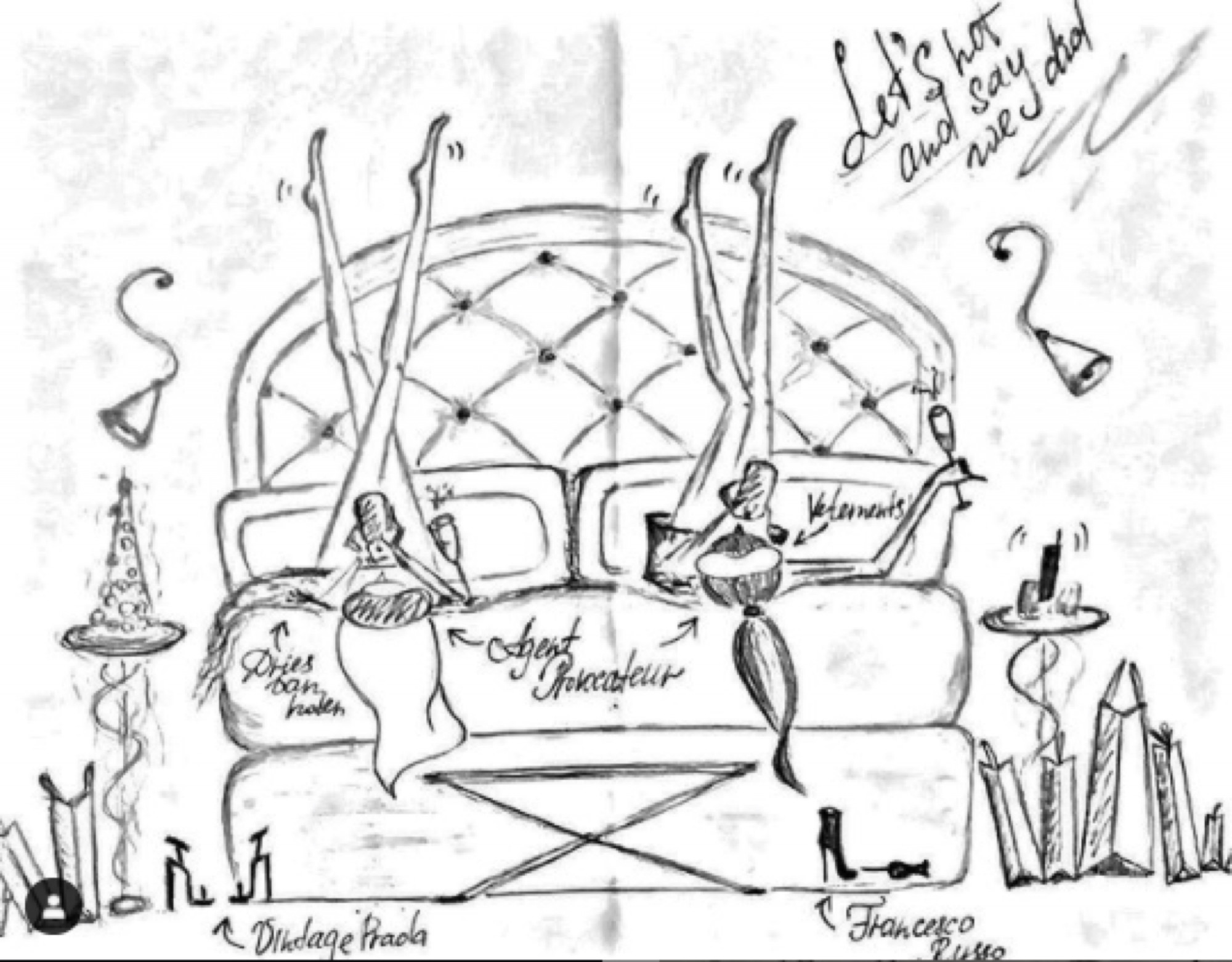 Koo’s works acknowledge that displayable art is particularly coveted by the conspicuous consumer, and double down on this by being available for purchase at a commercial gallery. Ko Chun’s painting in the gambler’s fortune (2020) room mirrors this nicely, and Koo’s canny allusion to the domestic lead-light is my favourite aspect of the show. While the New York City decals were ill-conceived and patronising towards community members, perhaps Koo’s works turn this energy towards the wealthy art collectors proximate to the exhibition. It has to be said, though, that while there are many practices critical of art’s investment in the system of conspicuous consumption, it doesn’t seem to perturb consumers that much. Vogue Living recently featured an opulent Toorak mansion boasting both “Gucci in every room” and Russian art collective AES+F’s The Feast of Trimalchio, Arrival of the Golden Boat (2010) on the wall. The video, The Feast of Trimalchio (2009-2010), from which the collage is drawn, presents a hyper-indulgent world of self-obsession, materialism and consumption. In an image caption, listed alongside the artwork are a “vase by the Campana Brothers from Artemest; acid marble table lamp by Lee Broom from The Future Perfect, enquiries to Space Furniture; vase by John Booth”. Vogue Living’s writer seamlessly folds her description of the work into the article—a “digitally collaged tableau, telling of the gluttonous trappings of wealth within a classical framework”—and the piece goes on.
