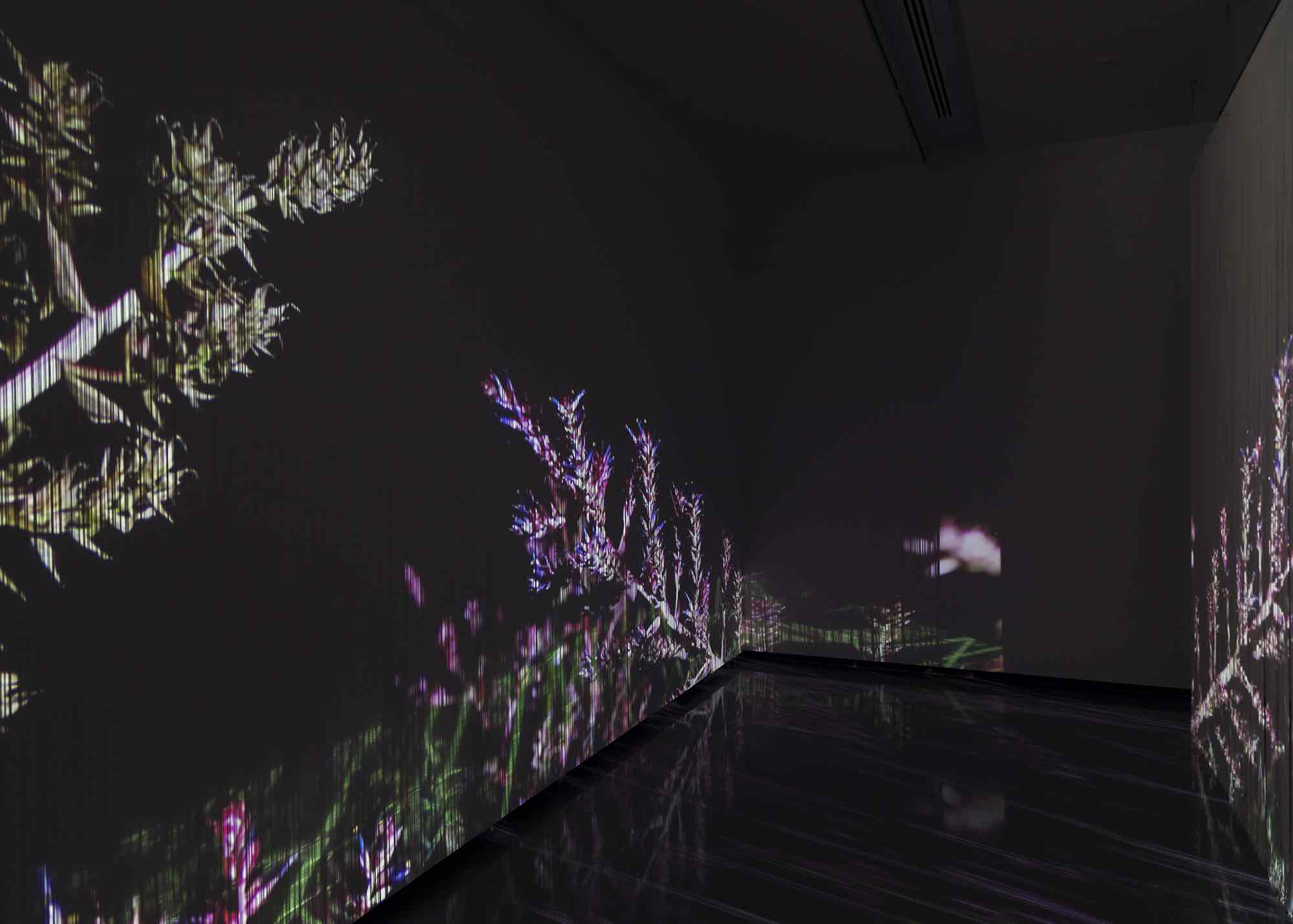 This point is reiterated in the adjacent video Exoplanets: Probiotics Probiotics! 2018, which displays microscopic footage of probiotic agents in the trendy fermented milk drink Kefir. The image collapses together macro and micro perspectives. The pale wrigglers on the screen, swimming through their deep indigo-coloured environment, could equally be unusually mobile heavenly bodies in a vast galactic system, or sperm anxiously seeking ova. The work points out that our bodies are a symbiotic composite of multiple parts, a galactic-scale ecosystem for microscopic life.