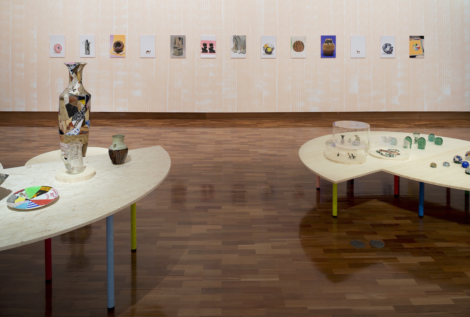 Turnbull also built tables to house the collection objects. With their multi-coloured legs and semi-circle structure, they might have been twee on their own. But when in contact with the historical pieces, a strange sense of historical levelling out—an ahistoricity—took place; it was as though the history couched in terms of the artefact and the zero age of the contemporary platforms they were on cancelled each other out. No doubt, there was a utopian impulse that ran through Turnbull's exhibition. But I don't care if you think utopian is a dirty word; here I use it positively. While there maybe is no such thing as a world where objects are all given equal significance—where a simple wooden bowl is seen as just as valuable as a Roman jug—surely we can argue, at the very least, that one of art's functions is to clear the space for seeing things differently, even if, in the real world, that microcosm cannot materialise. This was the strength of Turnbull's exhibition: to use art to propose new ways of existence, as 'model' not as 'fact'. This, of course, is not dissimilar to the rhetoric of avantgarde artists, only here Turnbull looks back into the past to create her utopian vision.