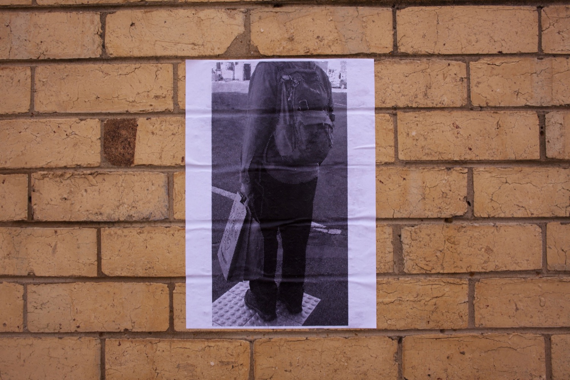 The origin of the paste-up exhibition idea was a series of posters Rapeport made advertising garments they had lost (a grey PVC bustier, a giant beaded paper clip brooch, a woven tartan bag and a brown windbreaker, if you see them anywhere). Their contribution invoked a vaguely threatening Neighbourhood Watch citizen surveillance program. The work was titled unattended suspicious objects (2021). A set of arrow-shaped stickers printed with technicolour crochet and knitting swatches were wrapped around two bike racks on either side of the road between block 3 and 4. Paul Yore, Kate Just and yarn-bombing came to mind. As a “guerilla” practice, yarn-bombing is earnest, exuberant and swiftly grotesque; unattended suspicious objects was an ironic pastiche of the genre, which is largely in the purview of Extinction Rebellious middle-class white women. Rapeport seemed to be prodding at certain time-worn truisms proferred by this demographic: that “craft is art”, that “fashion is political”. Obviously. But the forms aren’t neutral. How are hierarchies of taste ideologically inflected at any given moment? Which political affects do certain materials consciously or unconsciously align with? Can knitting be fascist?