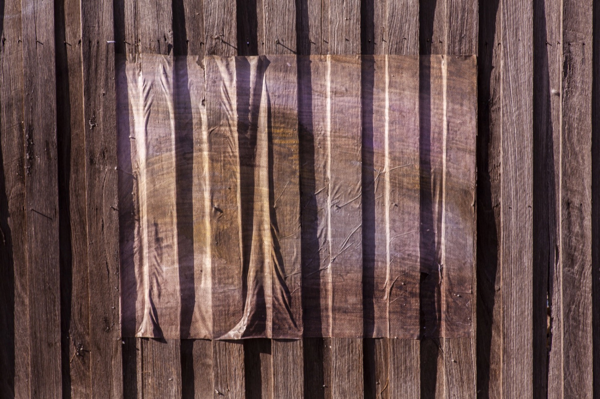 Further down at block 7 was the work of Ruth Cummins. We have always known her as an inside artist whose work looks like it belongs within the suburban residences sitting behind the fences on the path: blankets, cushions, pillowcases, towels etc. On the path presents the first outside art we’ve seen by the VCA graduate, three works aptly titled Cladding (March), Cladding (April) and Cladding (June). All 2020, Cummins surprisingly took her first aesthetic steps outdoors, depicting the exterior of the structure we assumed she was confined within during last years’ long lockdown. The three small prints, looking like studies of the artist’s larger domestic tapestries, were each smeared with an impasto porridge of wheatpaste drying in the winter sun. For June, the sun was unusually bright. It illuminated a charming little graffitied clearing across from Cummins’ work. There Krista Lyle’s three summery postcard-sized photographs titled Croatia 2, Croatia, and Greece depict idyllic scenes of an unknown swimming hole and what must be the Adriatic coastline. I want to go on a holiday, someone said. We kept walking.