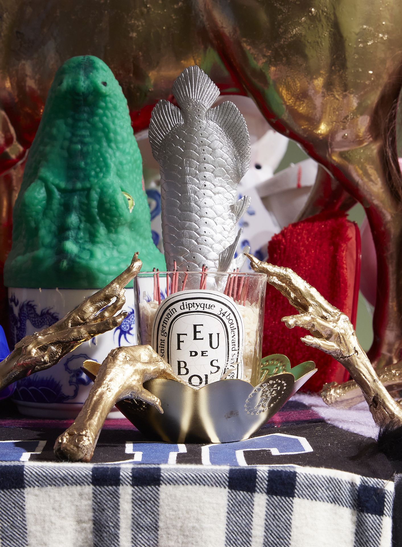 The dark undertone of Truong’s candied fiasco continues: stuffed toys are dismembered, swapped with other body parts; a jade-toned Jesus statue rests on canned food; comedic horses parade around motorised lazy Susans; a lantern of pig’s intestines dangle from the ceiling. These symbols represent the discrimination Truong faced while growing up as a Vietnamese migrant, including taunts about horse and pig cuisines, religious tensions (one side of her family are Christian, the other Buddhist), and conflicts between Western and Eastern beliefs. By unabashedly exposing and toppling these cross-cultural signifiers, Truong relieves herself from the “model migrant” pressures of her early life, facing her trauma head on.
