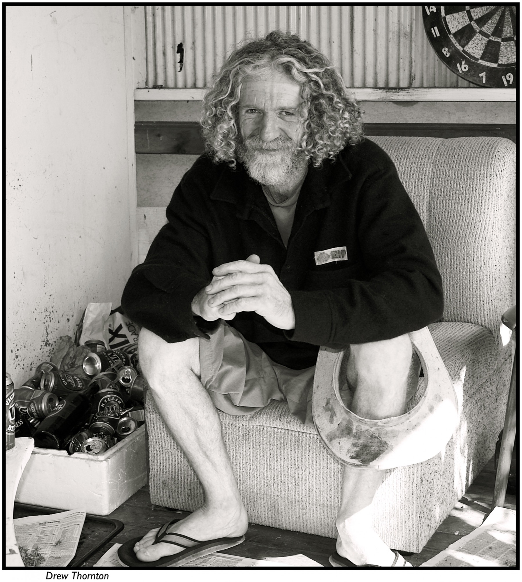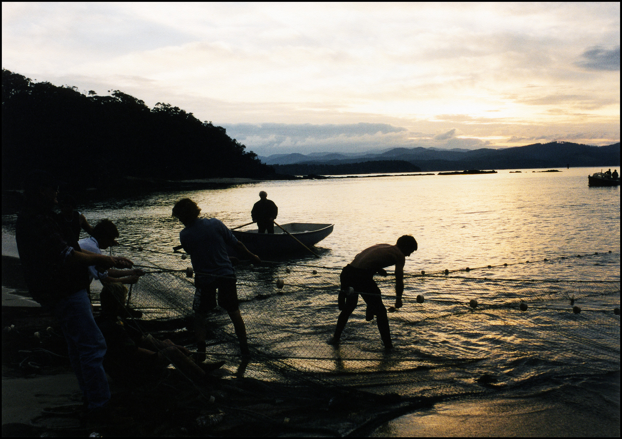 “I entered the community through photography”, Ruth tells me over email, referring to her relocation from St Kilda to Eden in 1996. Eden is a small working-class town known for its fishing and timber industries. The last large cluster of prints, taken in Eden and of their residents, once again generates a kind of non-hierarchical way of seeing: we are encouraged to dip in and out of these images, travel back and forth along the walls and pick where our eyes want to eventually rest. The colour photographs of young fisherman are especially curious in capturing the rough and raw working conditions along with revealing the sheer mass of catchments when farming the sea. In one image, a young man with thick matted dreads is shown sorting seventy boxes of squid; in another, a man wearing thick red rubber gloves stands on a mountain of caught orange roughy; on another wall, two young boys stand over a bloodied table, gutting fish. Ruth also interviewed the fisherman, and many of their stories about their working lives are placed next to their portraits, one of many social histories that reflect back to us her community.