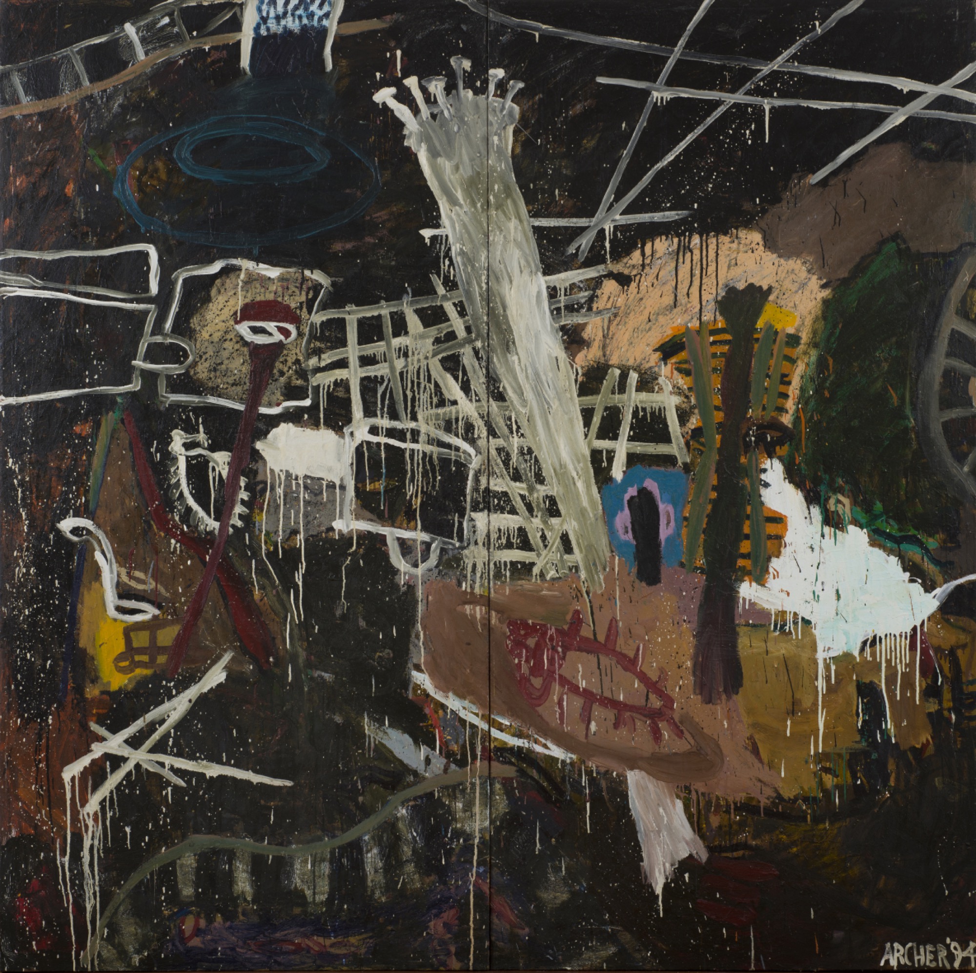 When the well-known painter Gareth Sansom opened Suzanne Archer’s show at the Nicholas Thompson Gallery in December, he made the rather large claim that two of the paintings—-Coalesce (1993) and Ant holes and Bandy-Bandy (1994)—-were the best he’d seen in Melbourne all year.